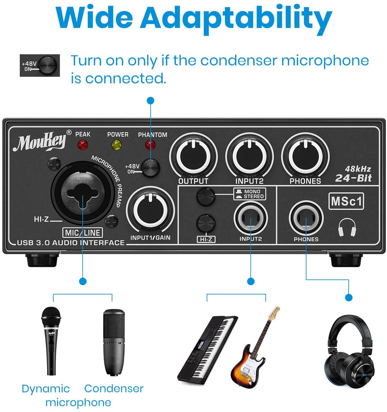 48V 幻像电源,24 位,支持智能手机、平板电脑、电脑和其他设备录音 – MSC1